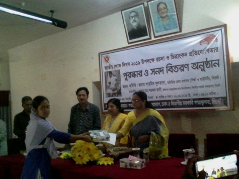 জাতীয় শোক দিবস ২০১৯ উপলক্ষে রচনা ও চিত্রাংকন প্রতিযোগিতার পুরস্কার ও সনদ বিতরণ অনুষ্ঠান
