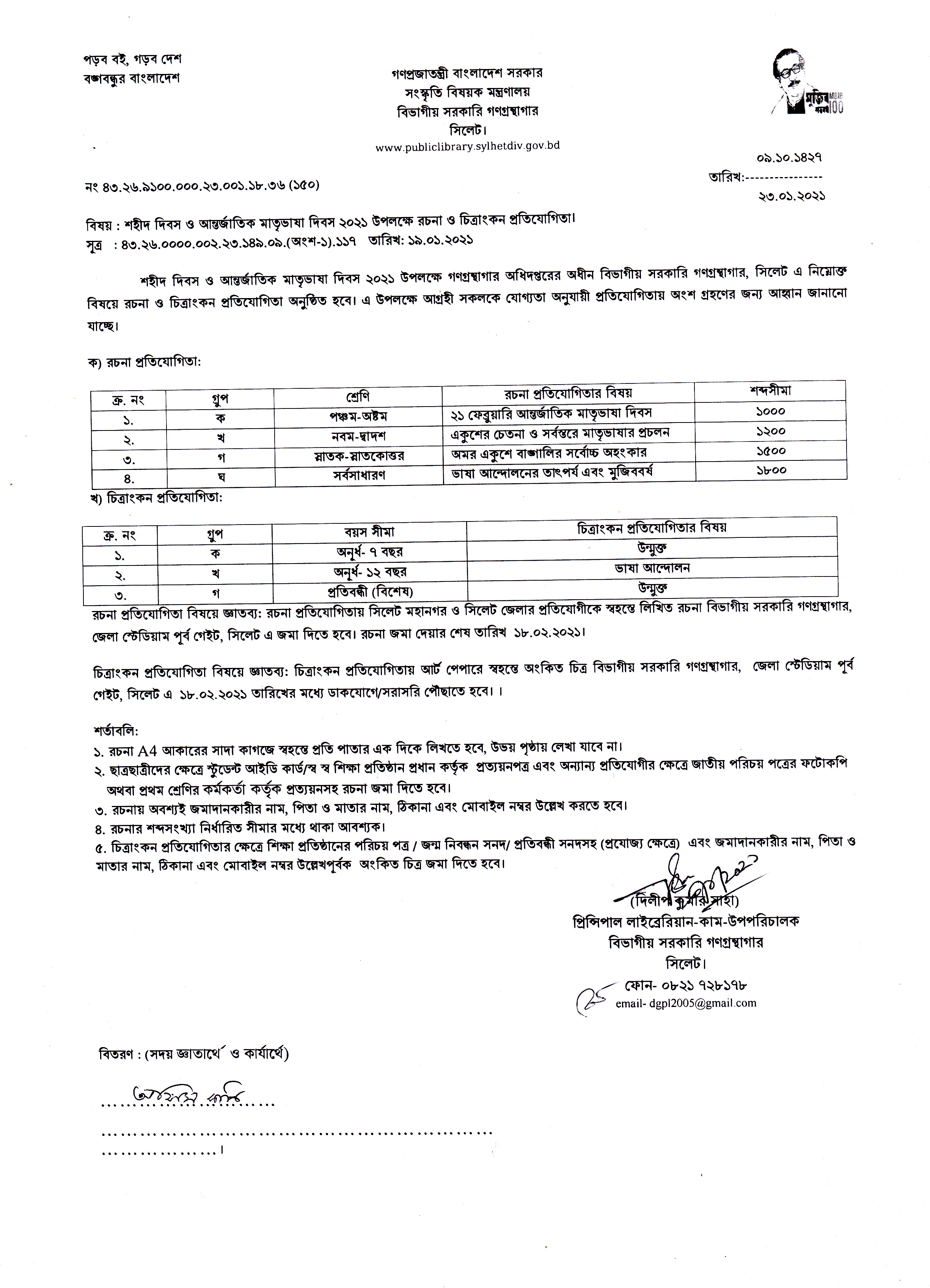 শহীদ দিবস ও আন্তর্জাতিক মাতৃভাষা দিবস ২০২১ উপলক্ষে রচনা ও চিত্রাংকন প্রতিযোগিতা।