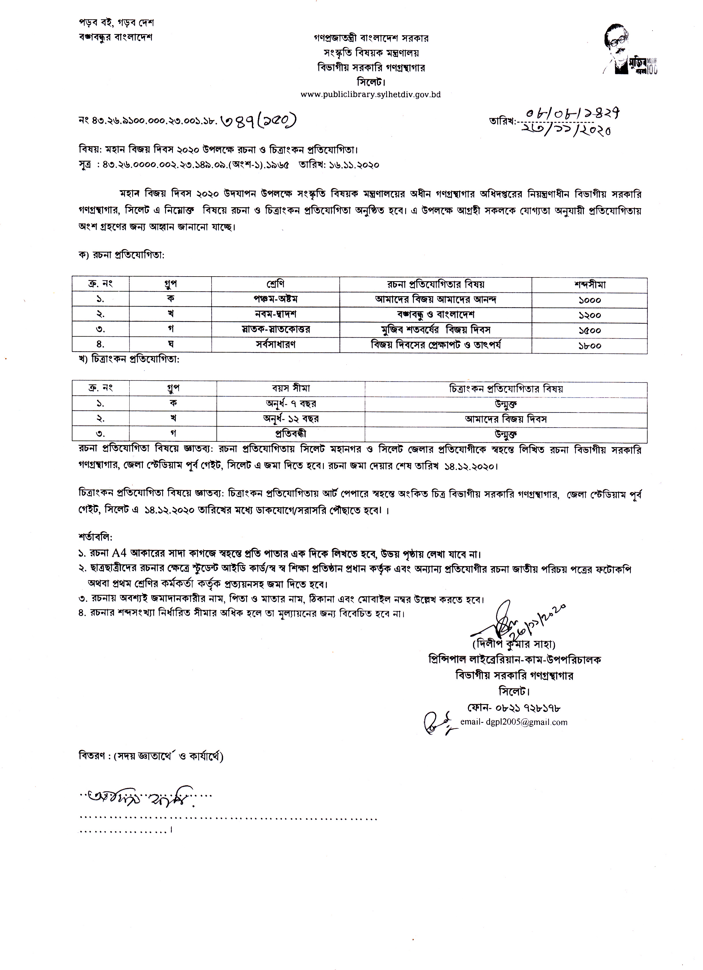 মহান বিজয় দিবস ২০২০ উপলক্ষে রচনা ও চিত্রাংকন প্রতিযোগিতা