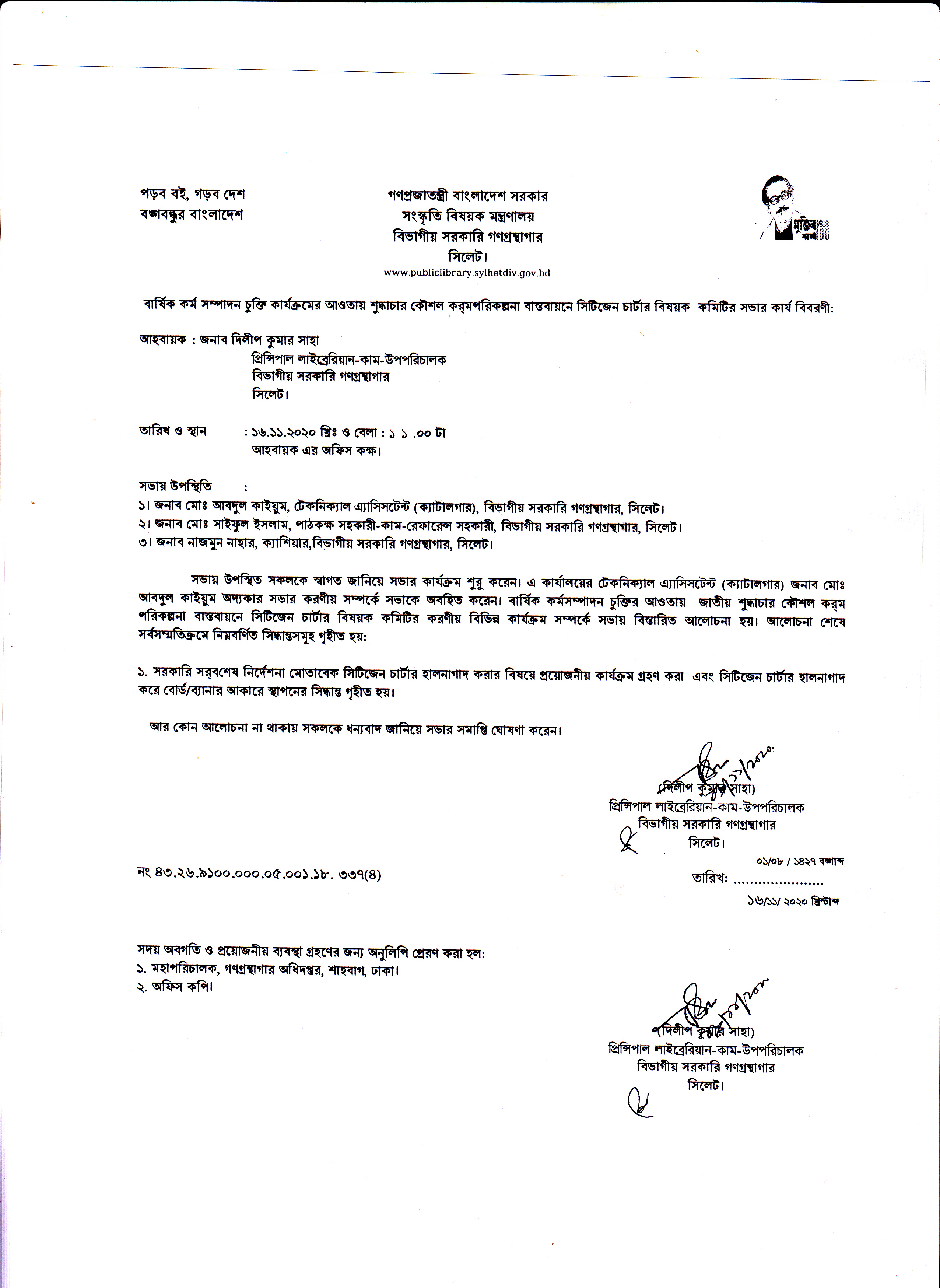 সিটিজেন চার্টার বিষয়ক কমিটির সভার কার্যবিবরণী ( ১৬/১১/২০২০)
